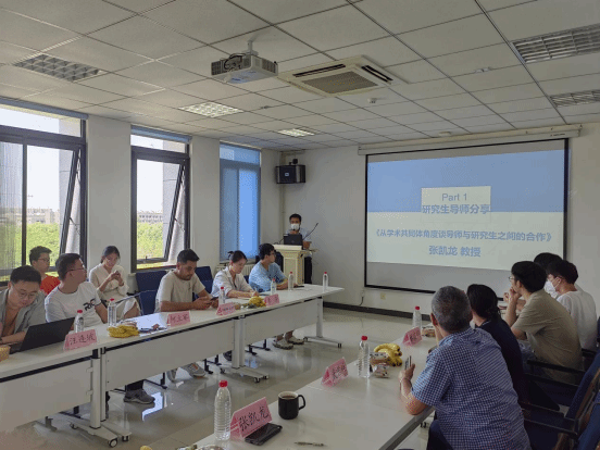 活动分为研究生导师分享、学生代表分享及师生交流环节。首先,研究生导师代表张凯龙教授做了主题为《从学术共同体角度谈导师与研究生之间的合作》的分享。向同学们阐释了导师培养学生的义务,同时指出学生应该与导师是双向奔赴,是一种合作关系,更是学术共同体。学生应该态度认真、踏踏实实完成各项任务并举一反三,不断提高自己的能力,融会汇贯,在迈向社会的道路上做出更多贡献。随后,干红平副教授结合自身科学研究指导经验,做了主题为《研究生如何做好科研》的分享,围绕认清自我发展方向、提高研究生自身各种能力、合理分配时间及做好科研创新等内容展开。他表示同学们应积极与导师保持有效沟通,以此正向促成导学双方情感融通、发展融合、力量融会。